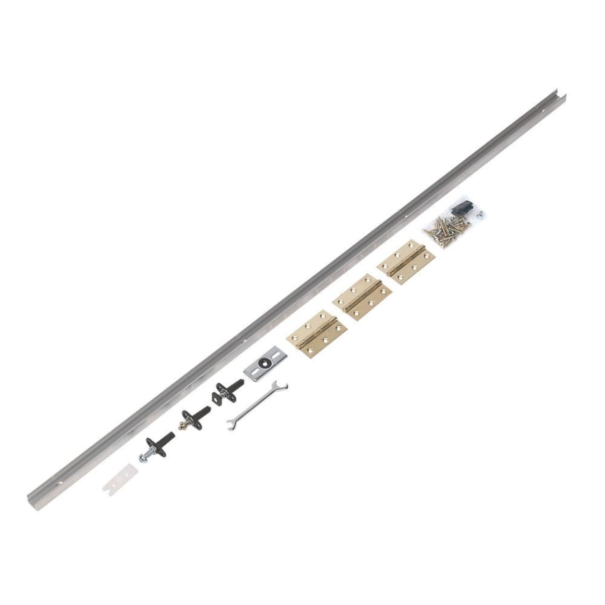 The bifold range of folding door hardware from P C Henderson offers a stable, silent and smooth-opening folding system for two cupboard and wardrobe doors that will complement any room. Designed for wooden, wood framed or composite doors, the bifold system can support a maximum door weight of 14kg and door thickness of between 18-35mm. This kit is suitable for two doors, has a track length of 1067mm and will suit doors up to 530mm wide.