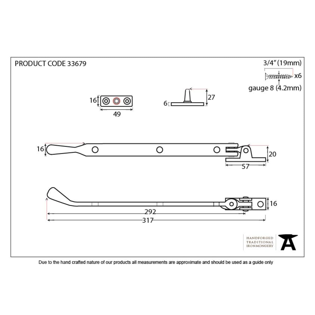 Ironmongery > Window Furniture > Casement Stays & Fasteners > From The Anvil Pewter 12" Peardrop Stay