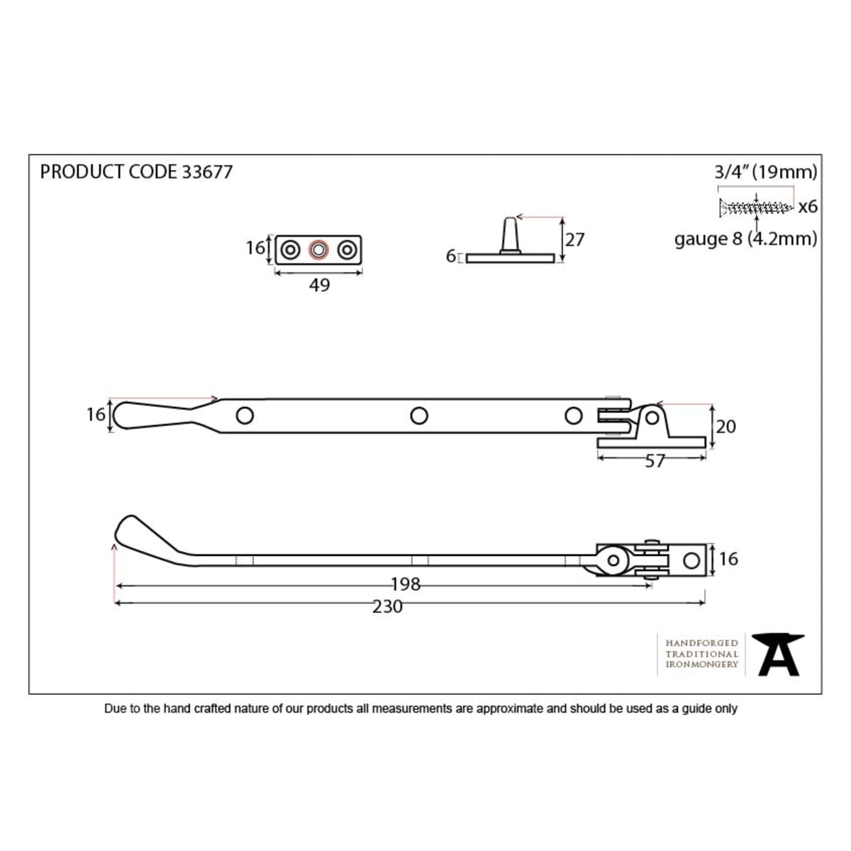 Our range of Peardrop stays feature a simplistic design combined with the benefits of a modern and secure configuration. Overall Length: 230mm Stay Arm: 198mm Fixing Plate: 57mm x 16mm