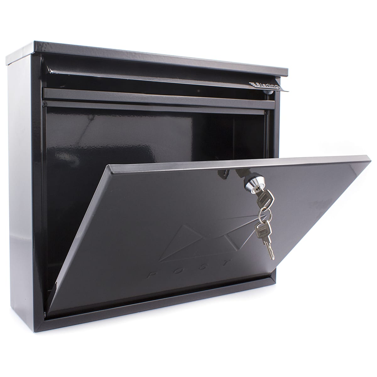 Phoenix black powder coated finish on a galvanised steel post box which is retangular in shape and ideal for using in a bank of post boxes.