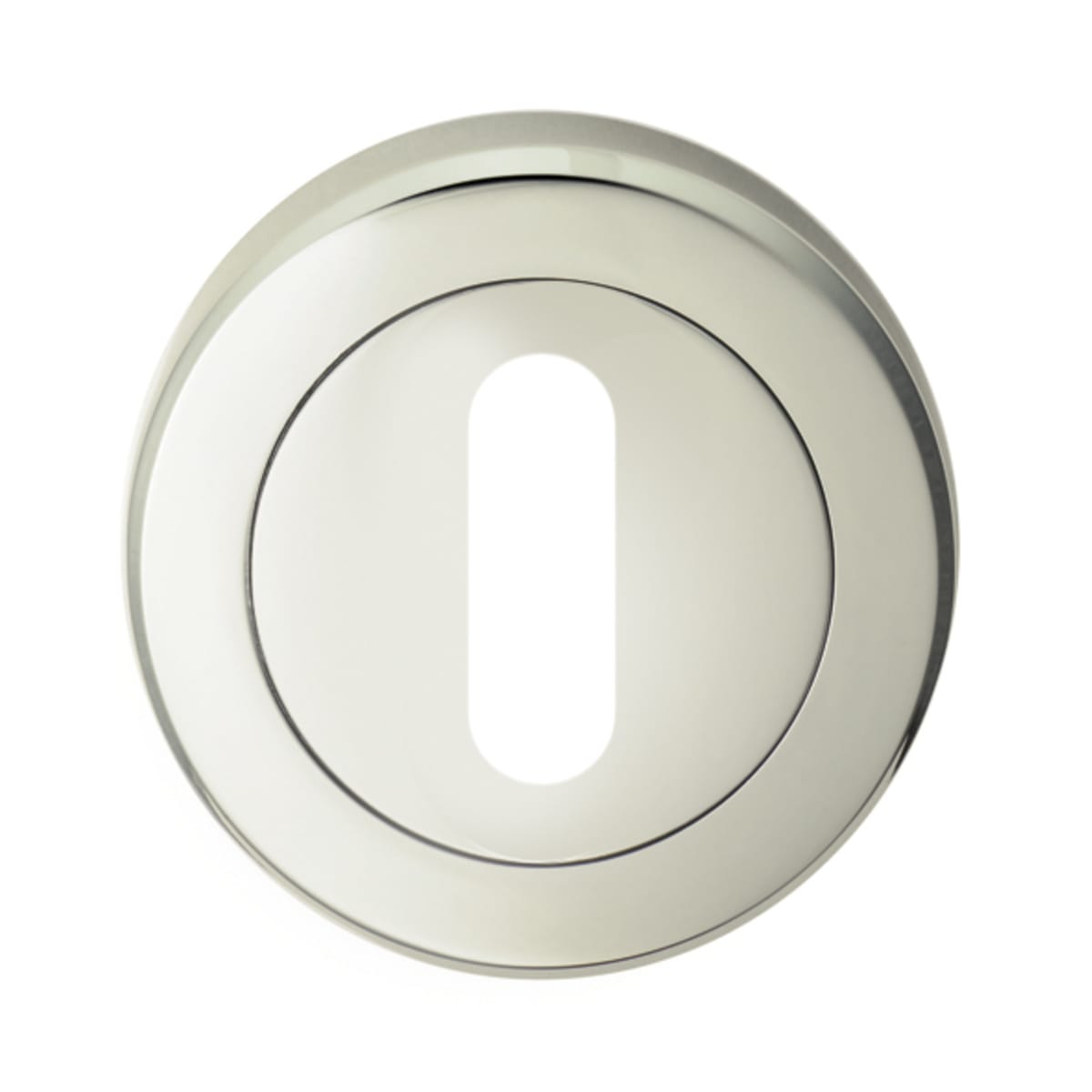 Round escutcheon with a chamfered edge, screw on rose, concealed fix. Standard lock profile. Designed to match the Serozzetta SZR Residential range of designer handles on round roses.