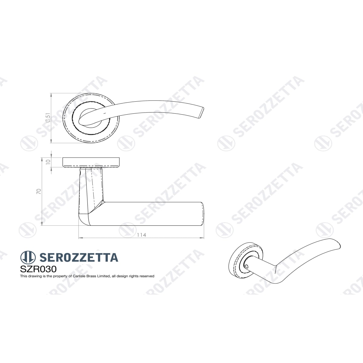 Lever on a chamfered edge concealed fix screw on round rose. An arched flat style lever with a smooth curved top. A simple elegant designer door handle, sleek and curved lines offer both comfort and visual appeal. Part of the Serozzetta Residential range. Comes with a 10-year mechanical guarantee.