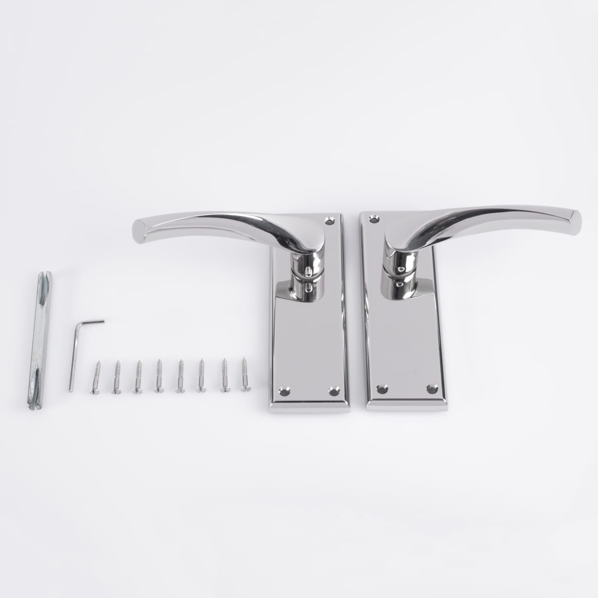 A Lever on a chamfered edge rectangular latch backplate. A stunning eye catching design. The lever has an angular downward twist making it ergonomic in use as well as being extremely stylish. Part of the Serozzetta Residential range. Comes with a 10 year mechanical guarantee.