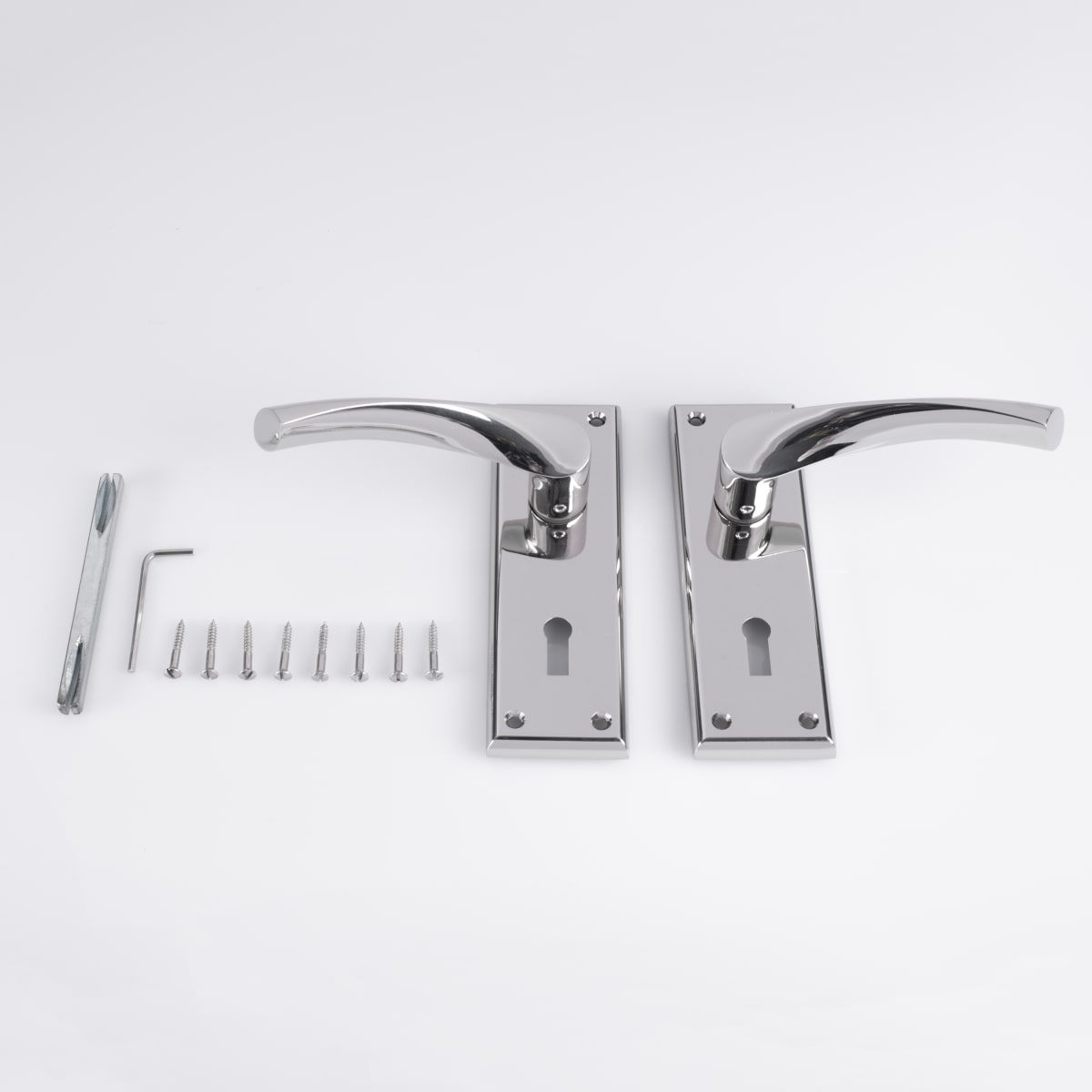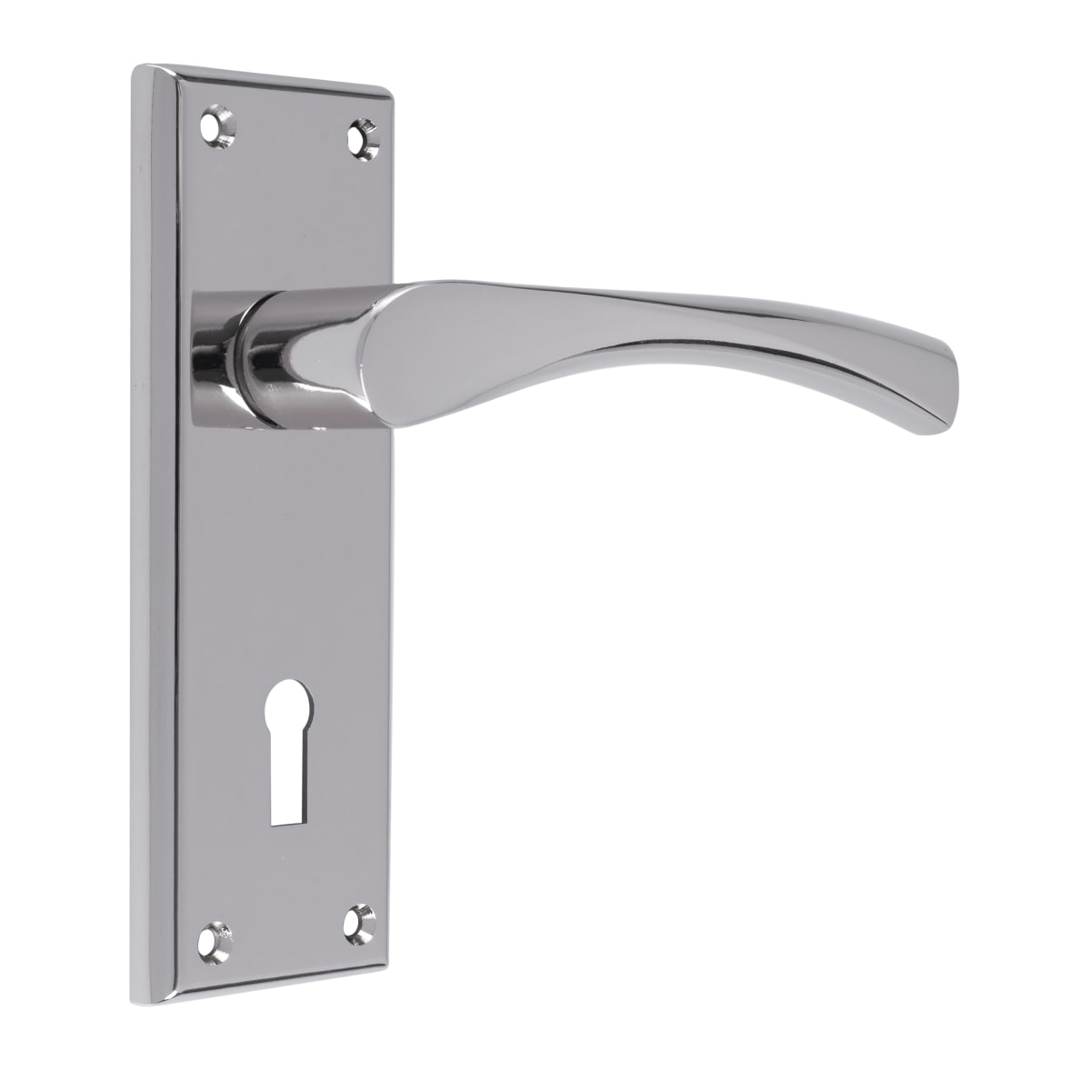 A Lever on a chamfered edge rectangular lock backplate. Standard profile 57mm c/c. A stunning eye catching design. The lever has an angular downward twist making it ergonomic in use as well as being extremely stylish. Part of the Serozzetta Residential range. Comes with a 10 year mechanical guarantee.