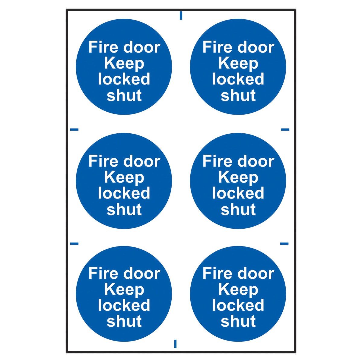 Product Name ‘Fire Door Keep Locked Shut’ Sign 100mm x 100mm 6 Per Sheet