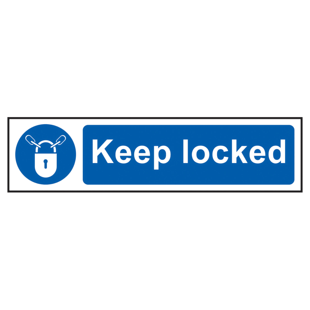 IDLISS5011 Tools, Equipment & Signage > Signage > Mandatory Signs (Blue) > Keep Locked' Sign, Self-Adhesive Semi-Rigid PVC 200mm x 50mm