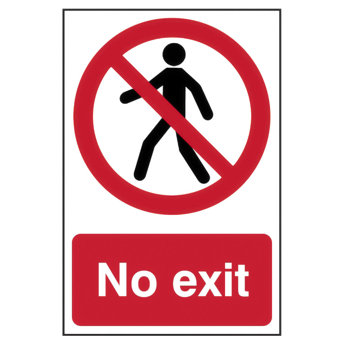 No Exit' sign is a 200mm x 300mm restricted access sign made from self-adhesive semi-rigid PVC making it easy to apply to a clean dry surface. All signs conform to the BS EN ISO 7010 regulation, ensuring that all graphical safety symbols are consistent and compliant.