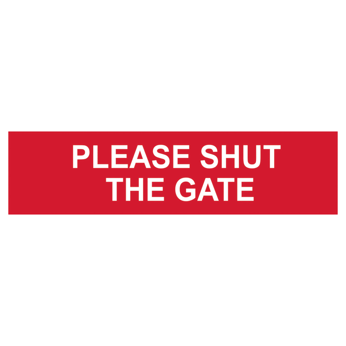 Please Shut The Gate' Sign, Self-Adhesive Semi-Rigid PVC 200mm x 50mm