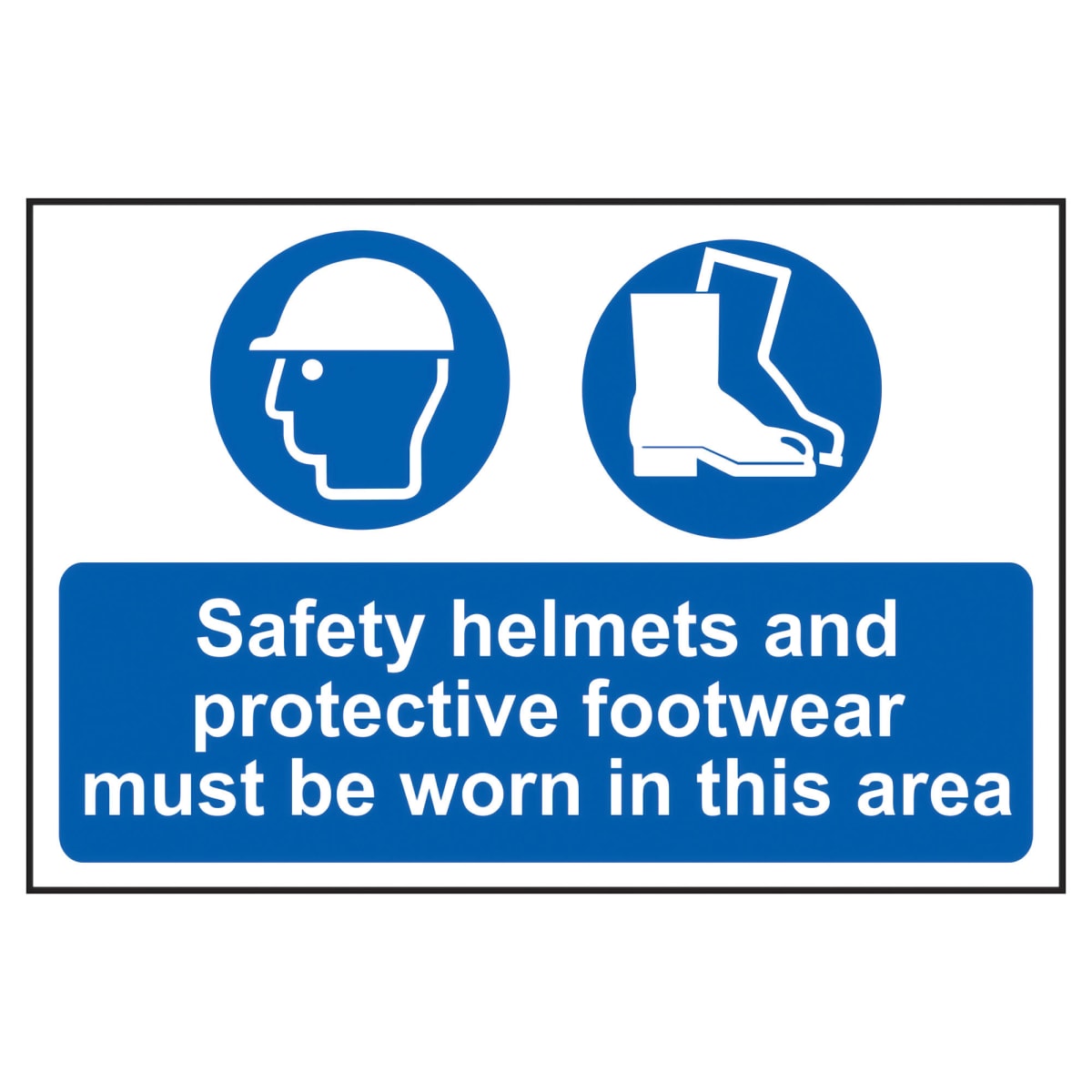 IDLISS4001 Tools, Equipment & Signage > Signage > Mandatory Signs (Blue) > Spectrum 'Safety Helmets and Protective Footwear Must Be Worn' Sign