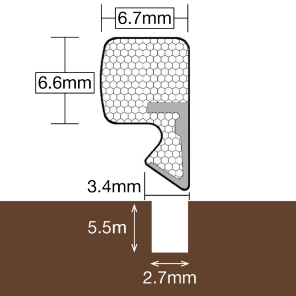 • Can be press fitted into a 2.7mm wide x 5.5mm deep location groove within timber, PVC and composite frames.