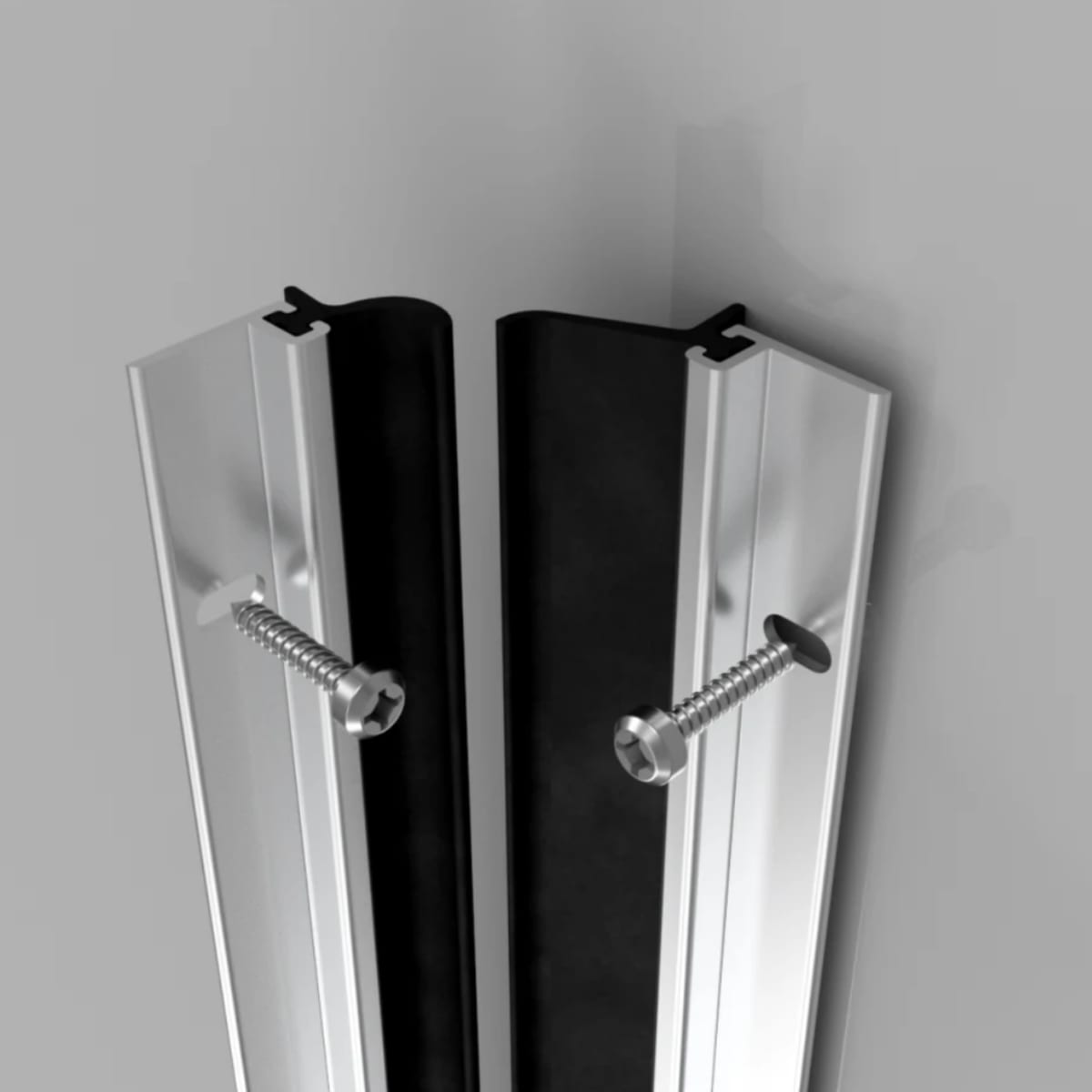 Heavy duty around door seal set with aluminium carrier and nitrile rubber draught proof strips. Seals gaps up to 10mm around inward opening doors to protect against rain and draught intrusion. Wind pressure increases the efficiency of the system. Can be used as a ‘cold smoke seal’. Available in size 2057mm in mill finish aluminium, gold effect finish aluminium and white powder coated finish aluminium with slotted holes for adjustable screw fixing.