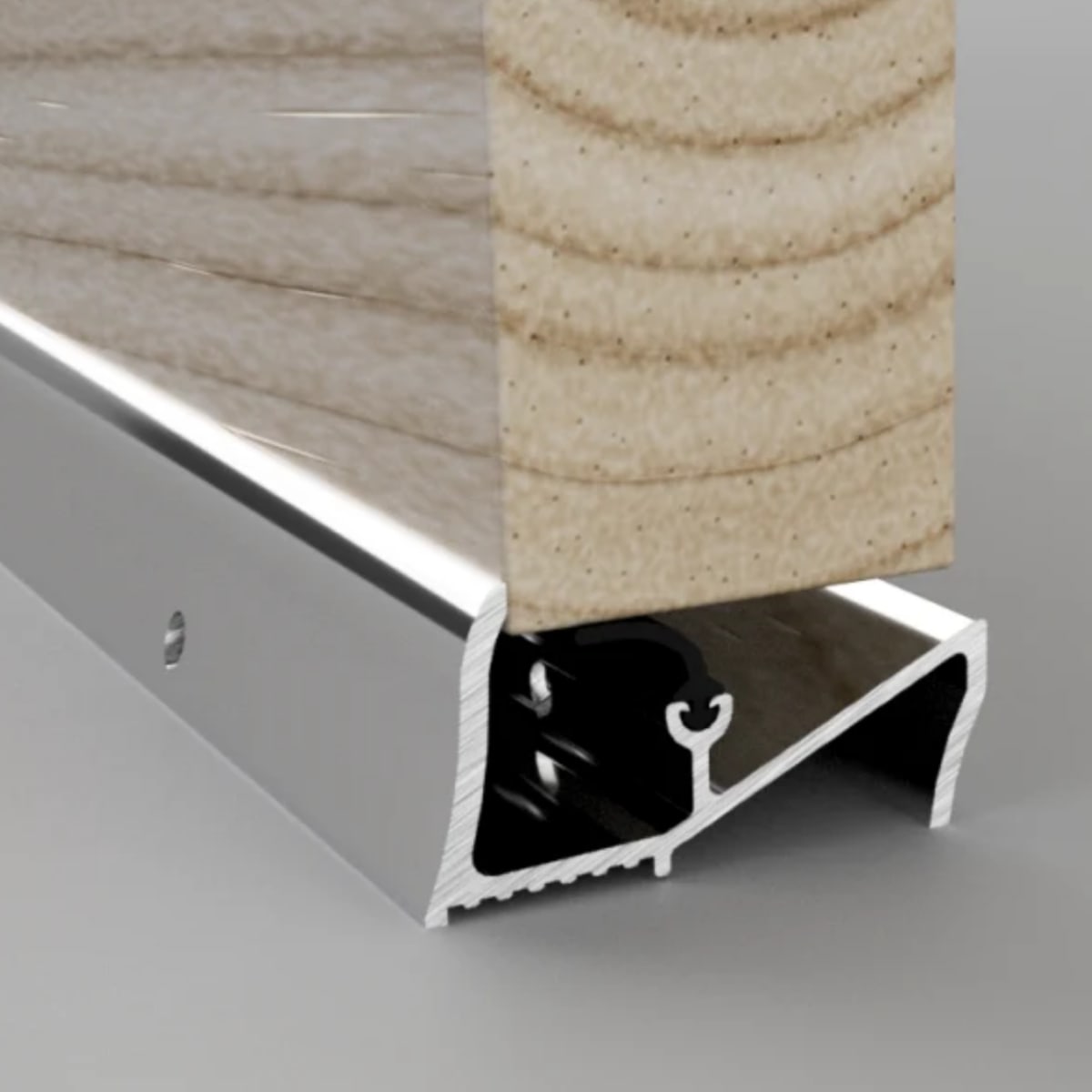Lowline high performance threshold suitable for inward opening doors. Seals under door gaps of 22-27mm. Available in size 838mm in mill finish aluminium and gold effect finish aluminium.