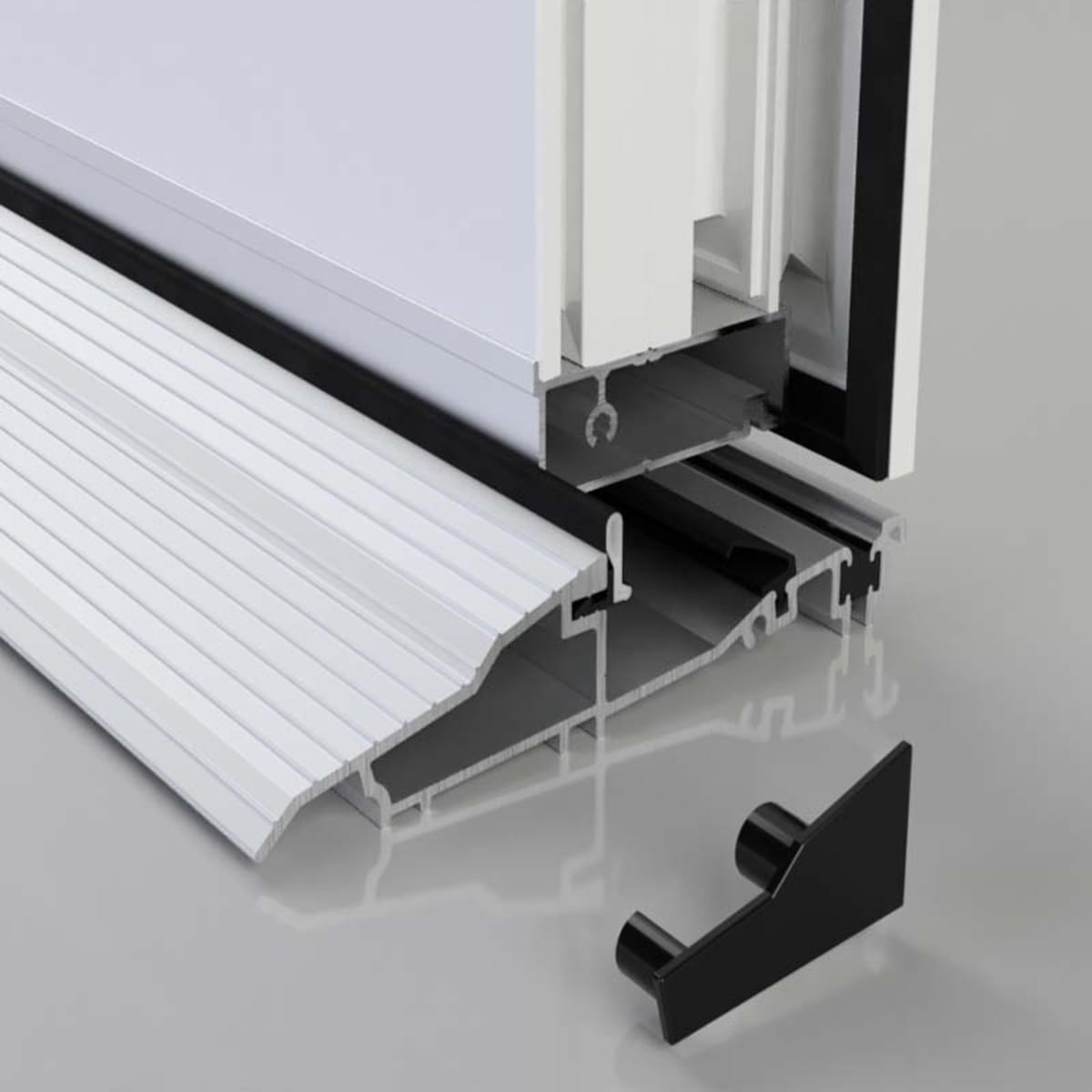 Proline AM3EX mobility easy access inward opening threshold primarily designed for door-set manufacturers, can be installed as fourth side of a door frame or retro fitted. Thermally broken to meet thermal bridging and insulation requirements. Can be used with many different frame and door materials, e.g. Wood, PVCU, Fibreglass, Aluminium, Steel and Carbon Fibre.