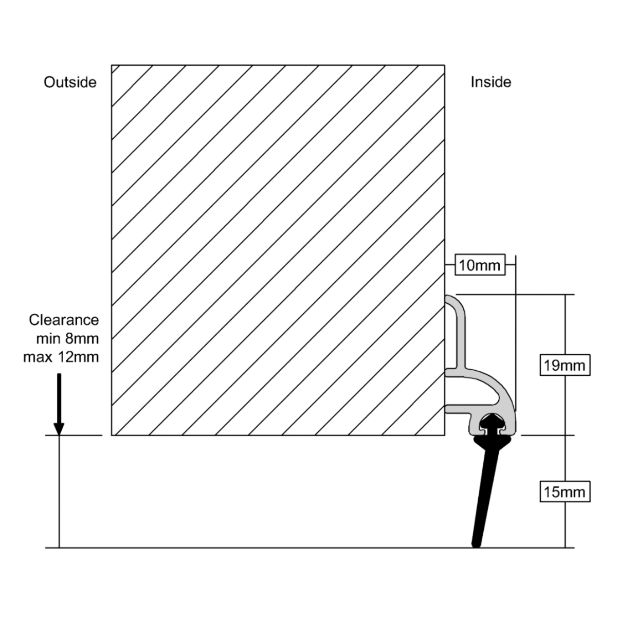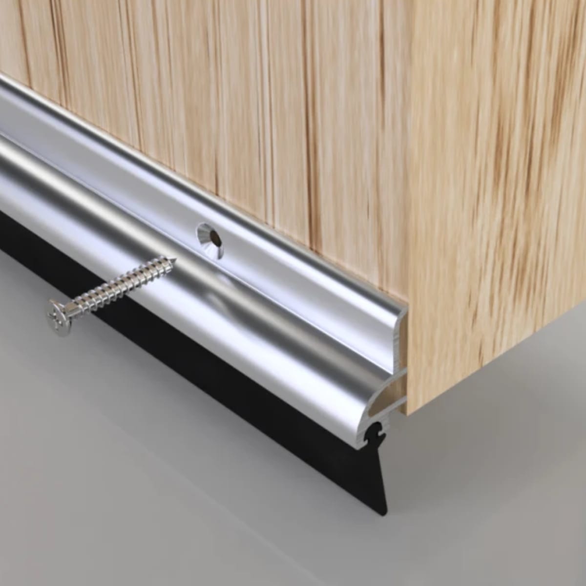 Effective rubber seal draught excluder that seals gaps 12-16mm. Designed for use with a threshold sill or other raised step. Ideal for sliding, folding, hinged or garage doors. Can be used as a ‘cold smoke seal’. Available in size 914mm in mill finish aluminium.