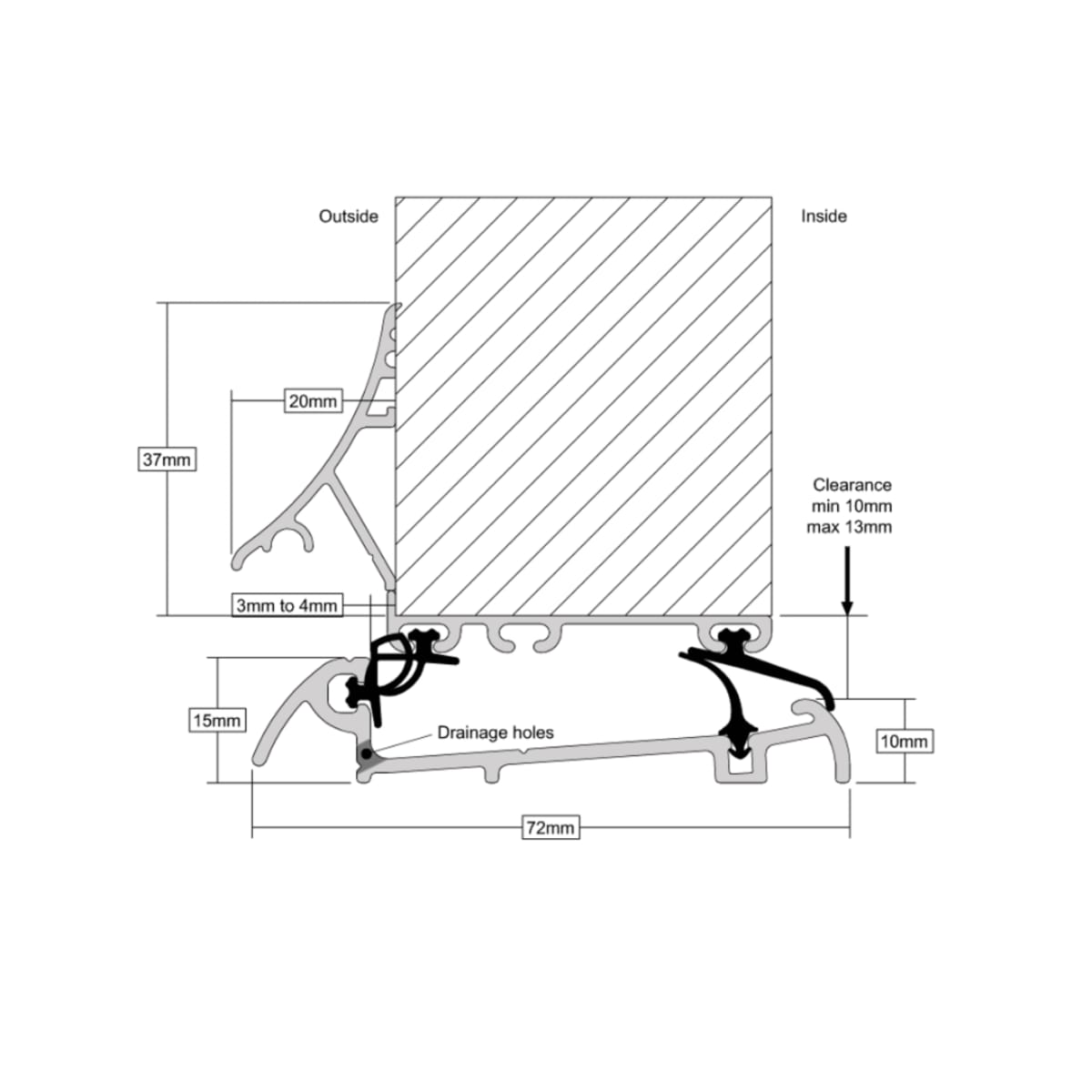 • 3 part threshold. Upper front section supplied with black PVC protective end caps