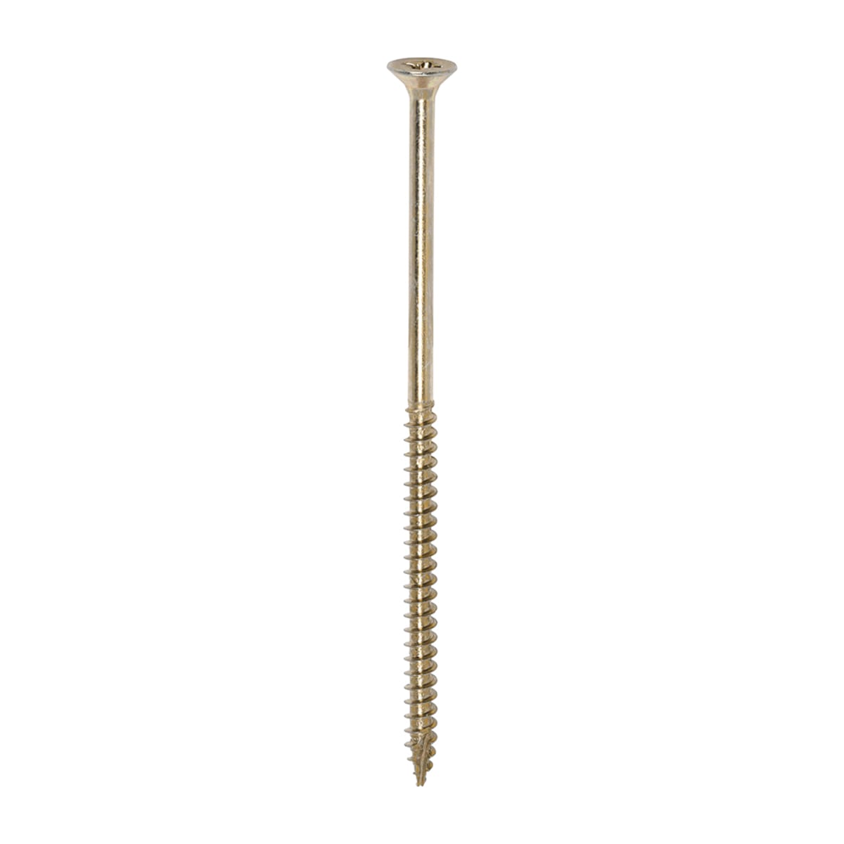 TIMCO Classic Multi Purpose Screw 130 x 6mm (L x Dia) Box of 200 is zinc yellow passivated plated, and manufactured from carbon steel. It has a 25 degree sharp point and is a fully threaded screw, allowing easy installation. Suitable for use in wood, plasterboard and sheet materials. The single deep thread provides a secure fixing with high pull-out resistance, and is fully threaded up to 70mm thereafter partially threaded.