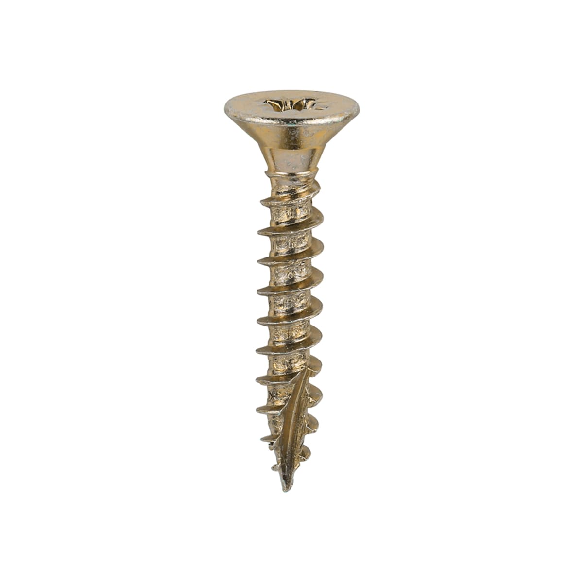 TIMco Classic Multi Purpose Screw 30 x 5mm (L x Dia) Box of 200 is zinc yellow passivated plated, and manufactured from carbon steel. It has a 25 degree sharp point and is a fully threaded screw, allowing easy installation. Suitable for use in wood, plasterboard and sheet materials. The single deep thread provides a secure fixing with high pull-out resistance, and is fully threaded up to 70mm thereafter partially threaded.