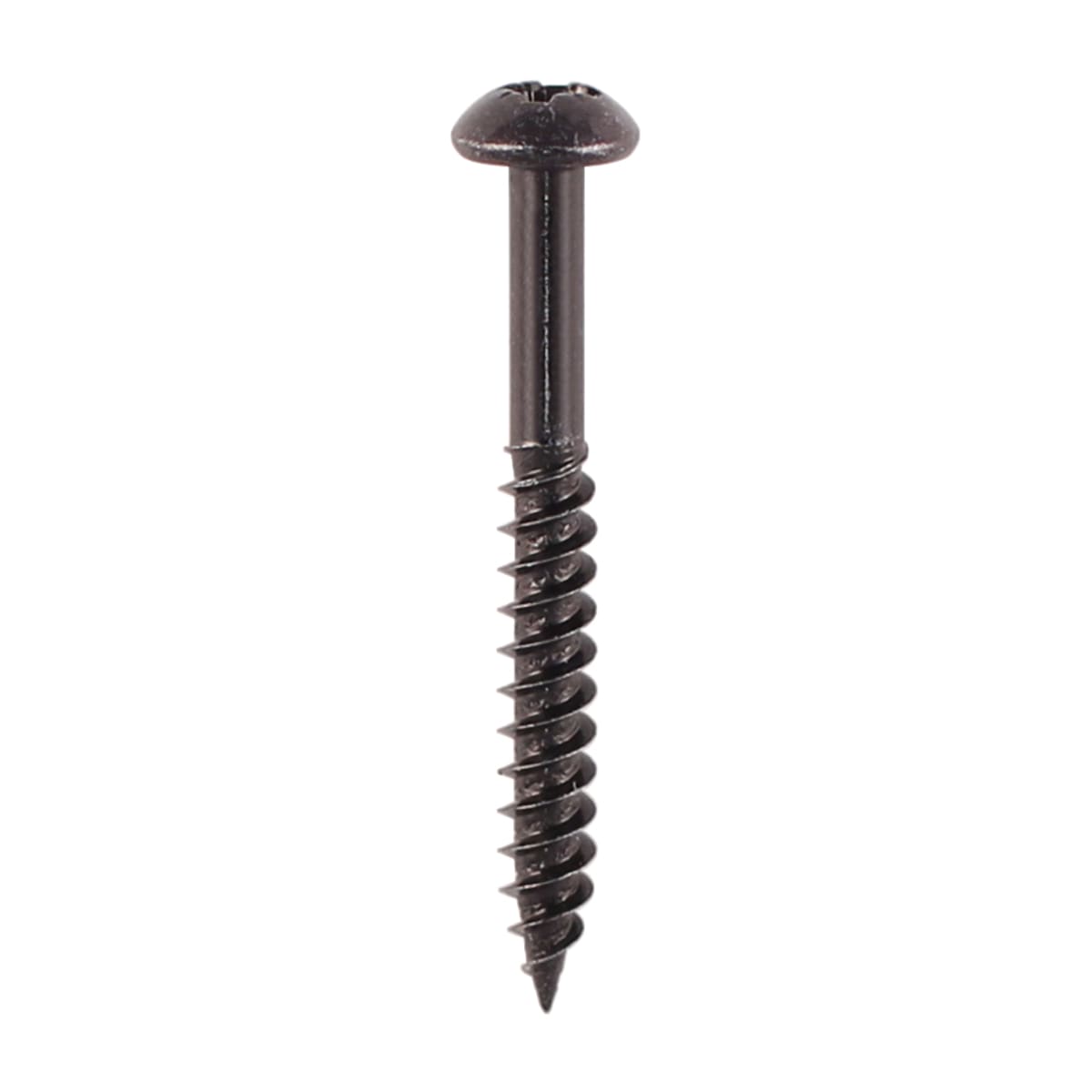 TIMCO Twin-Thread Blackjax Round Head Woodscrews 10 Gauge 1.5" L Black Passivated comprising of 200 units features round cross head top. Designed to be used with a black ironmongery. Twin-threads with parallel shank at 60 degrees for faster insertion and greater pull-out resistance.