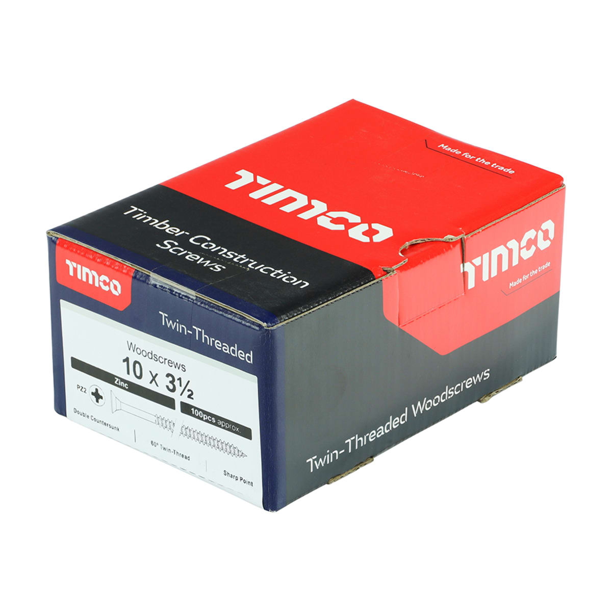 IDLMT10088 Screws, Fixings & Adhesives > Screws > Wood Screws > TIMCO Twin-Thread Woodscrews Countersunk Head 10 Gauge 3.5 Inch Box of 100