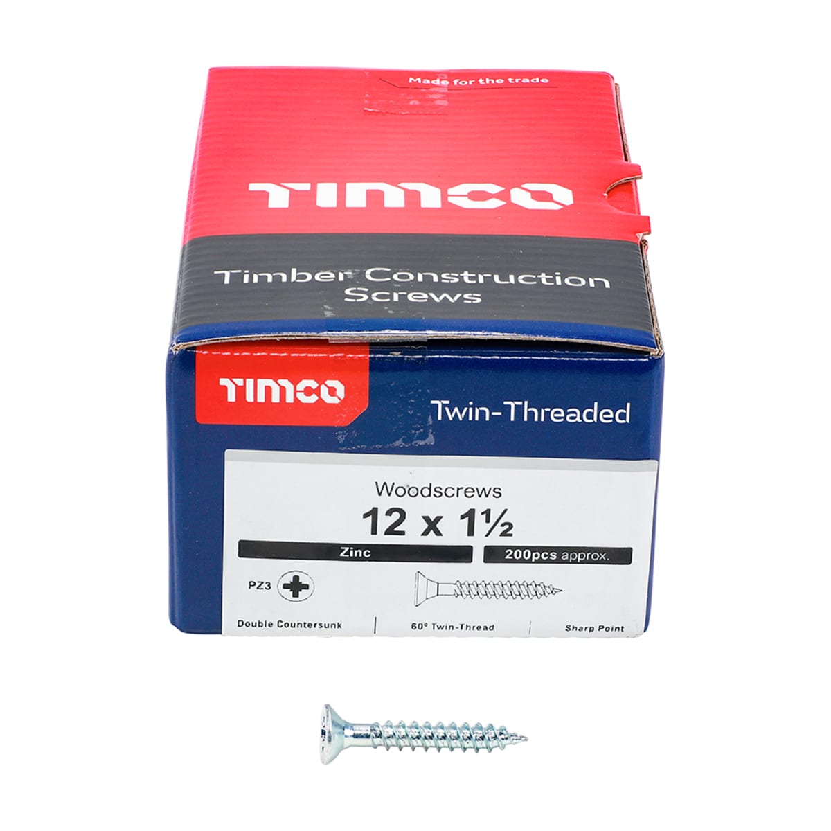 Product Name TIMCO Twin-Thread Woodscrews Countersunk Head 12 Gauge 1.5 Inch Box of 200
