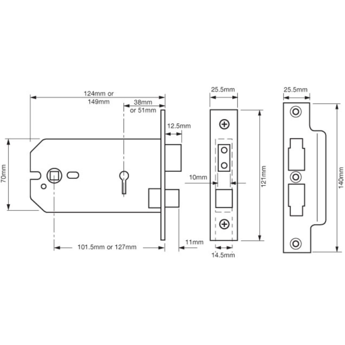 Union 2077 3 Lever Horizontal Mortice Lock 149mm (D) Polished Brass is suitable for 54mm timber doors hinged on the left or right, and can be keyed alike with 2157, 2177, 2277 and 2477. Also with a reversible latch and piercings to accept bolt through furniture.