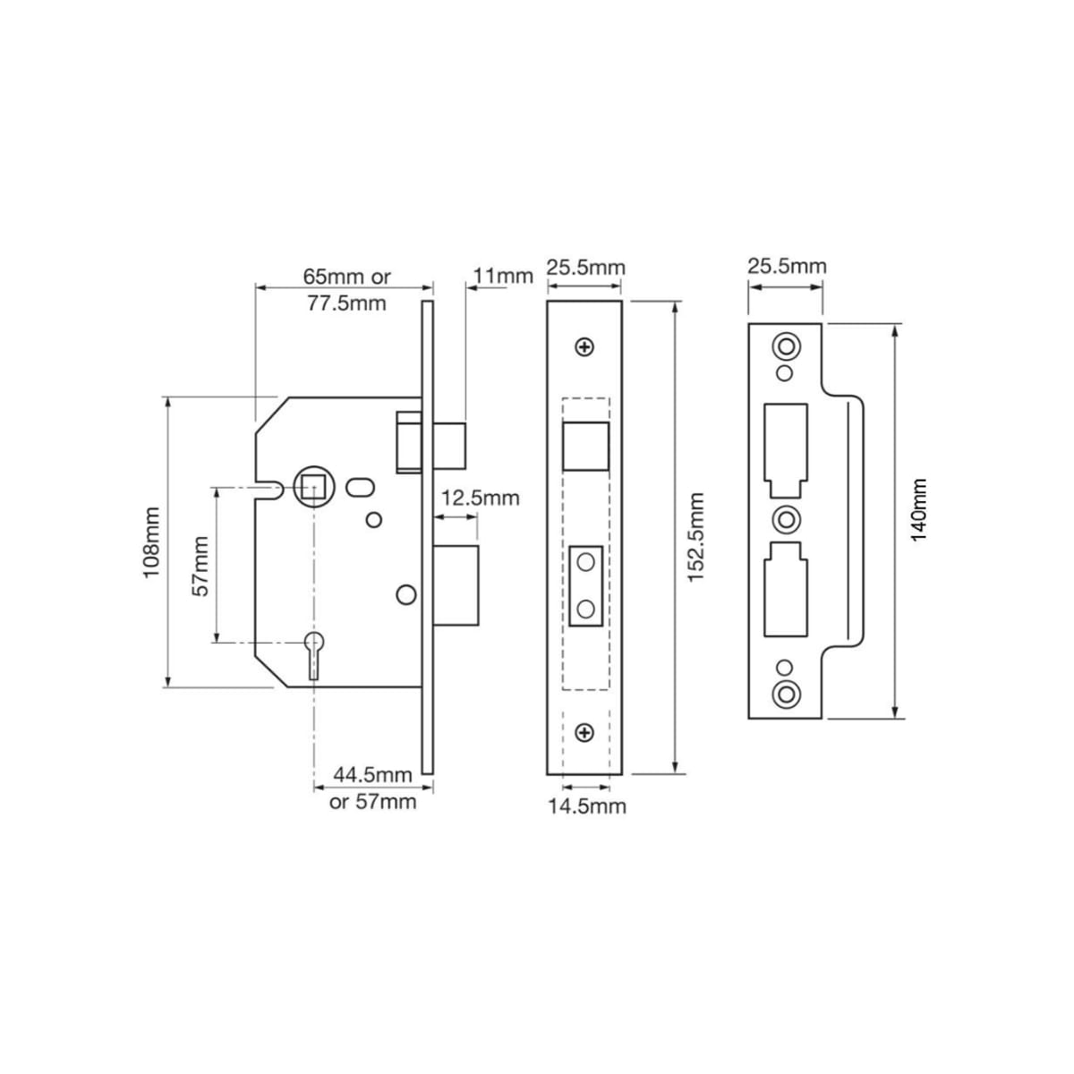 Union 2201 5 Lever Mortice Sash Lock 65mm (D) Polished Brass is a CE marked mortice deadlock that can deadbolted locked and unlocked by key from either side. Suitable for 54mm timber doors hinged on the left or right, and pierced to accept bolt through furniture. It also has a reversible latch for easy handing.