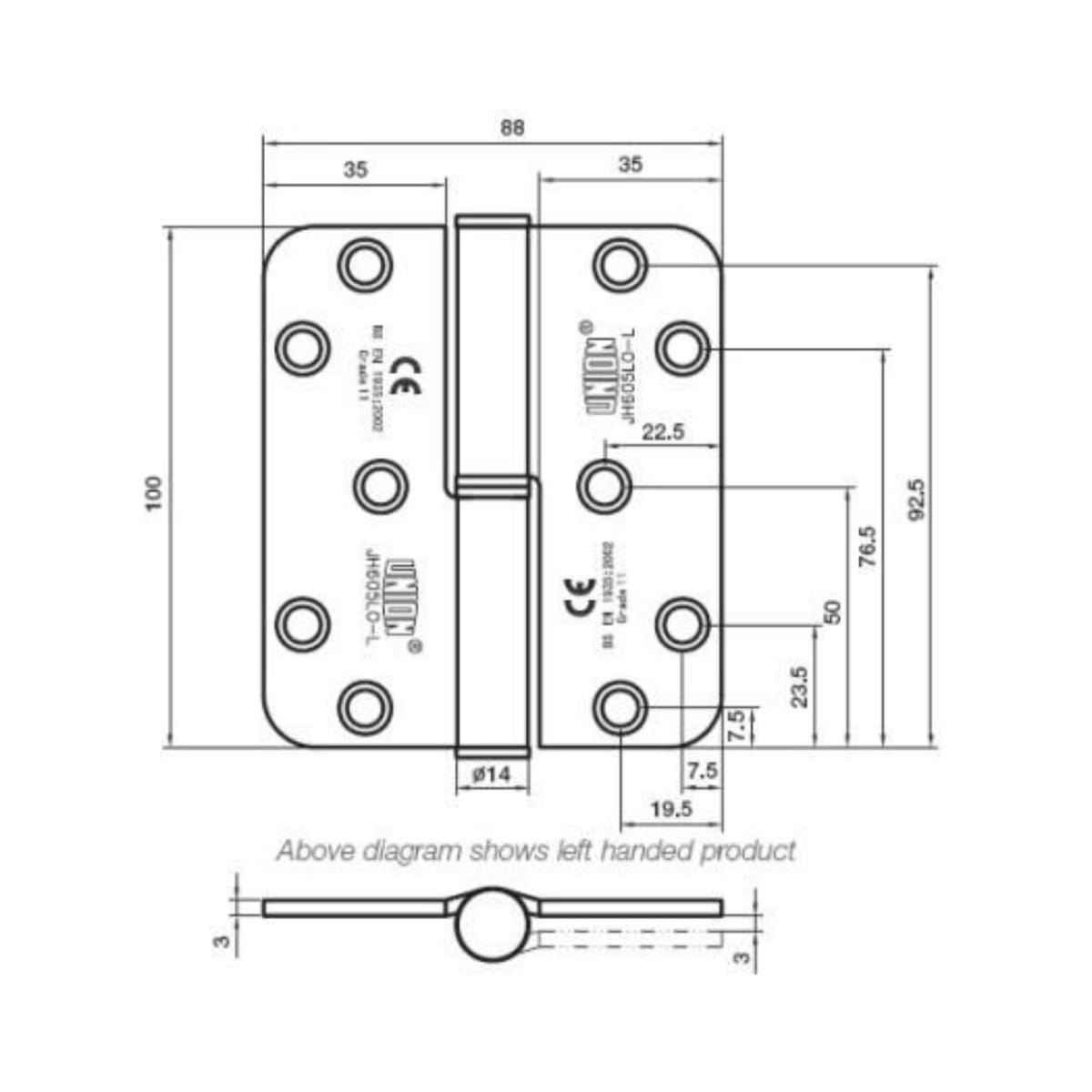 IDJH65RBZP Hinges, Seals & Intumescent > Hinges > Fire Door GR13 Hinges > Union 605 Powerload Lift Hinge RH Radius Corner Bright Zinc Plated 100mm X 88mm X 3mm