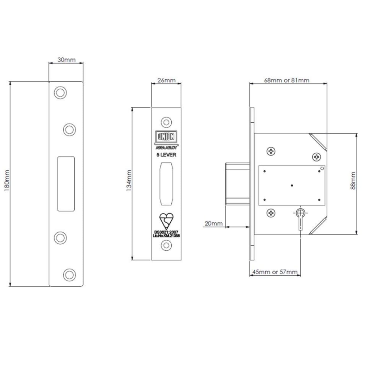 Product Name Union 2100-BS StrongBOLT 5 Lever Deadlock 81mm Satin Brass