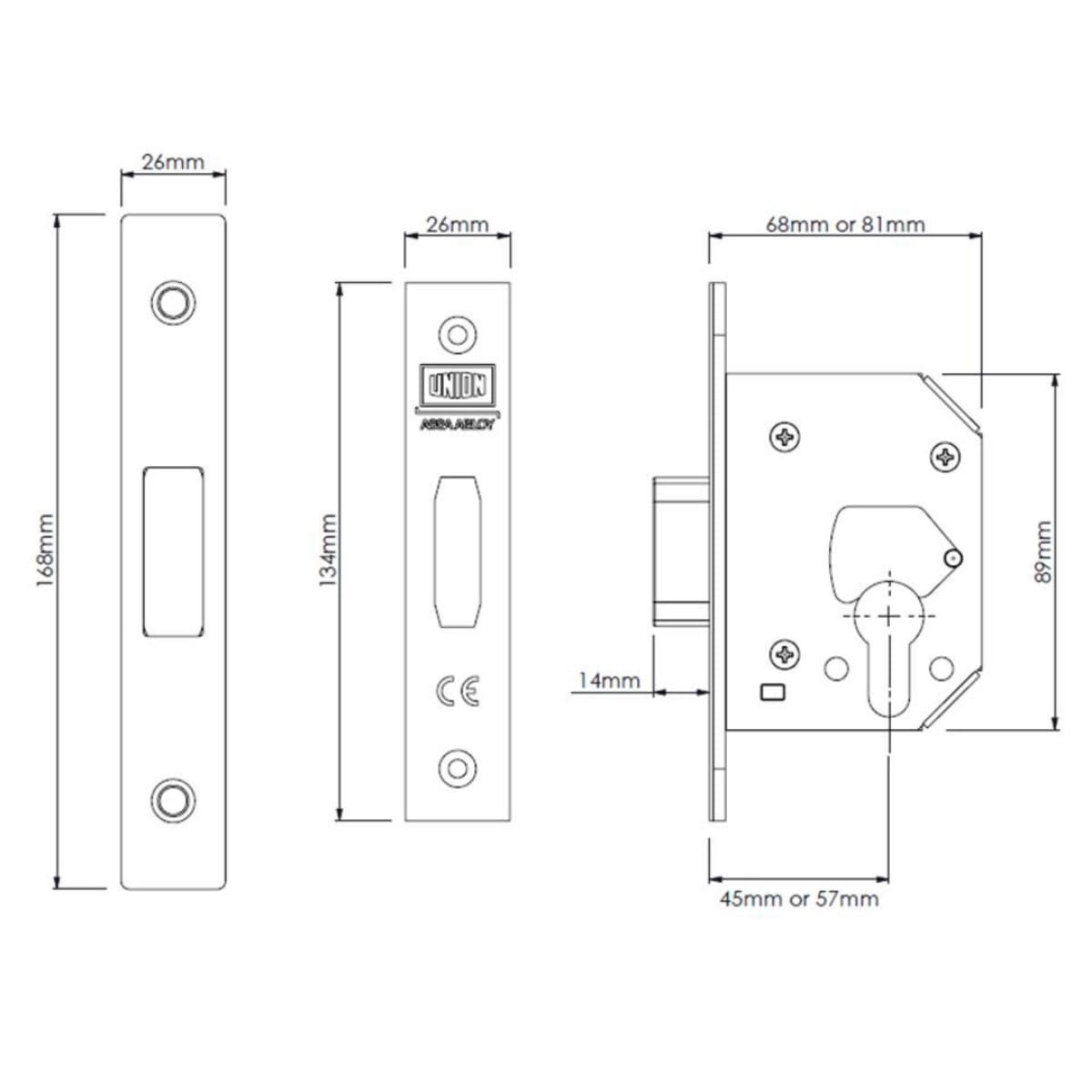 IDYYL21S30 Locks & Security > Locks, Latches & Cylinders > Mortice Locks > Union 21EU StrongBolt Euro Profile Deadlock 81mm Stainless Steel