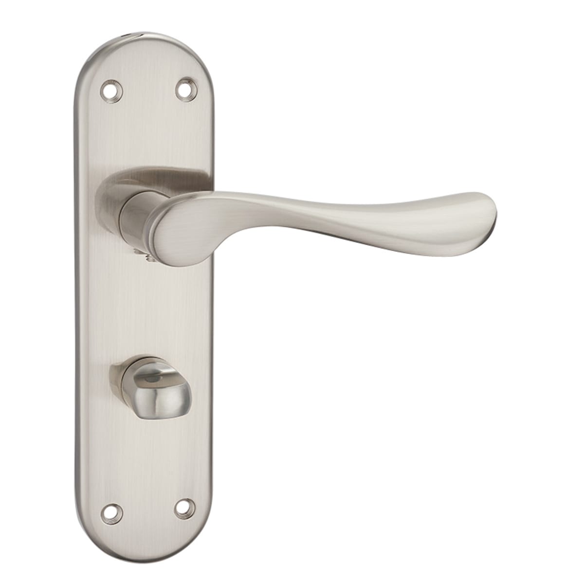 IDBOSS0067 Door Hardware & Closers > Door Furniture > Door Handles > Fortessa Wave Lever on Backplate Bathroom Set Satin Nickel