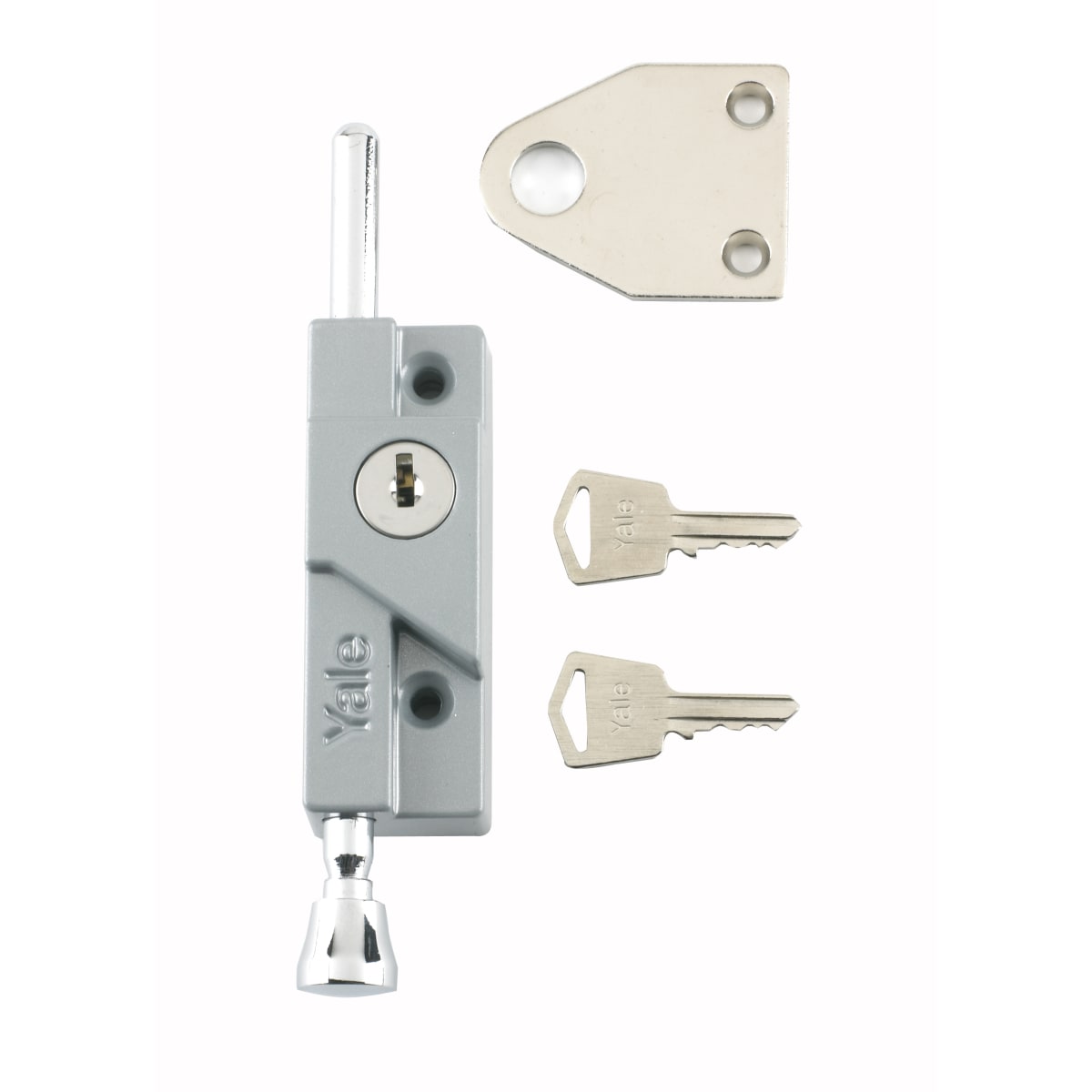 Yale Multi-Purpose Door Bolt 114 x 230 x 25mm (L x H x D) Silver Enamel is suitable for securing single or double aluminium sliding doors. It is ideal for hinged doors and wooden doors with simple push to lock action. The key differing mechanism releases the bar from the frame.